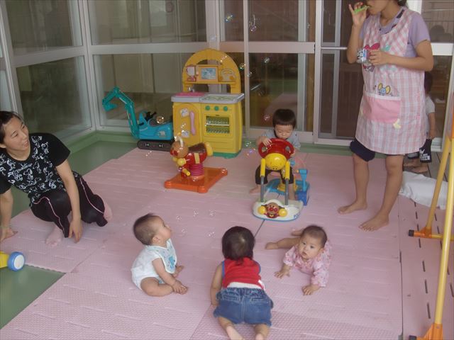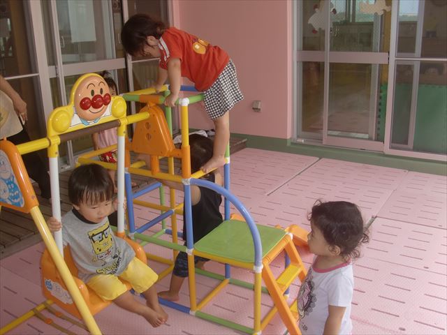 あたたかな人間関係を基調に、子どもとの応答の場を多く持ち、なん語の発達を促す。環境を整え、自由に這い回る空間を大切にし、五感を促す。
