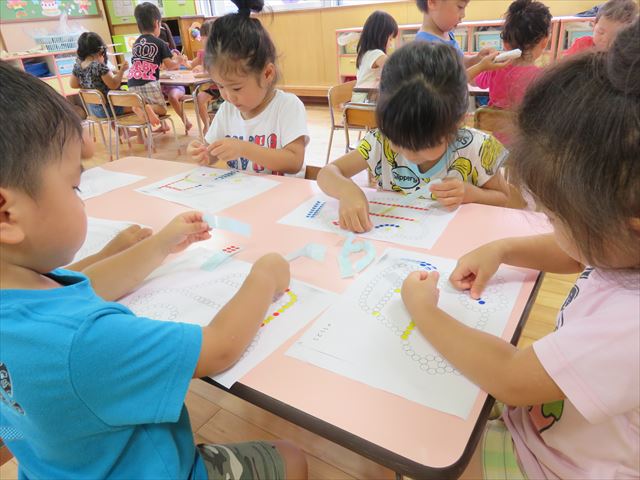 運動能力を高め、様々な活動を通して、自信や意欲と集中力をもたせる。グループ活動を通して、相手の立場に立って、物事を考える思いやりの心、協調性を養う。また、より細かく観察する力も身につけさせる。